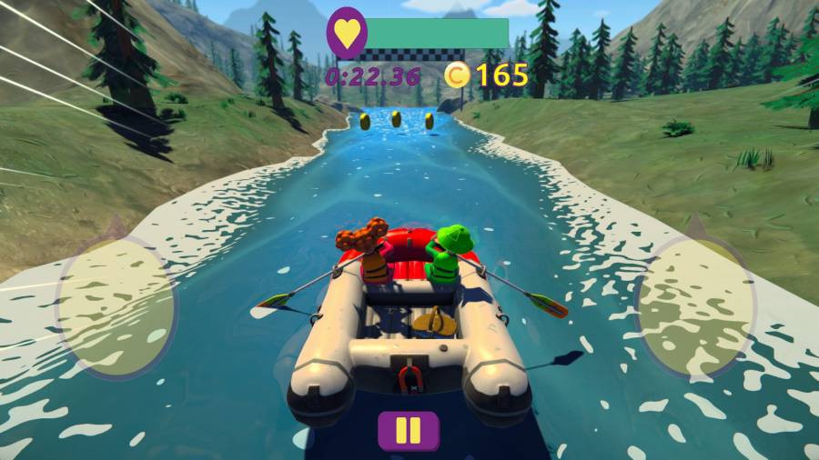Risky Rapids is a co-op, screen-sharing canoe racing game for mobile devices. The game has three levels with increasing difficulty and a unique environment on each level. The player's main goal is to get to the finish line as quickly as possible.